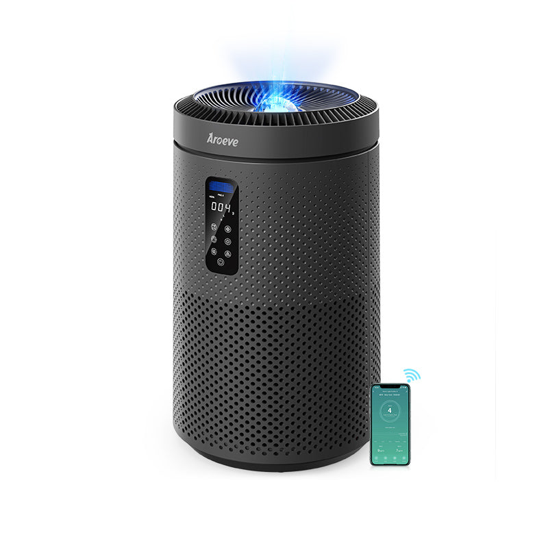 We ran this AROEVE air purifier for a full 10 minutes on each available mode and marveled at how effectively it improved the room’s air quality after only two to three minutes.
