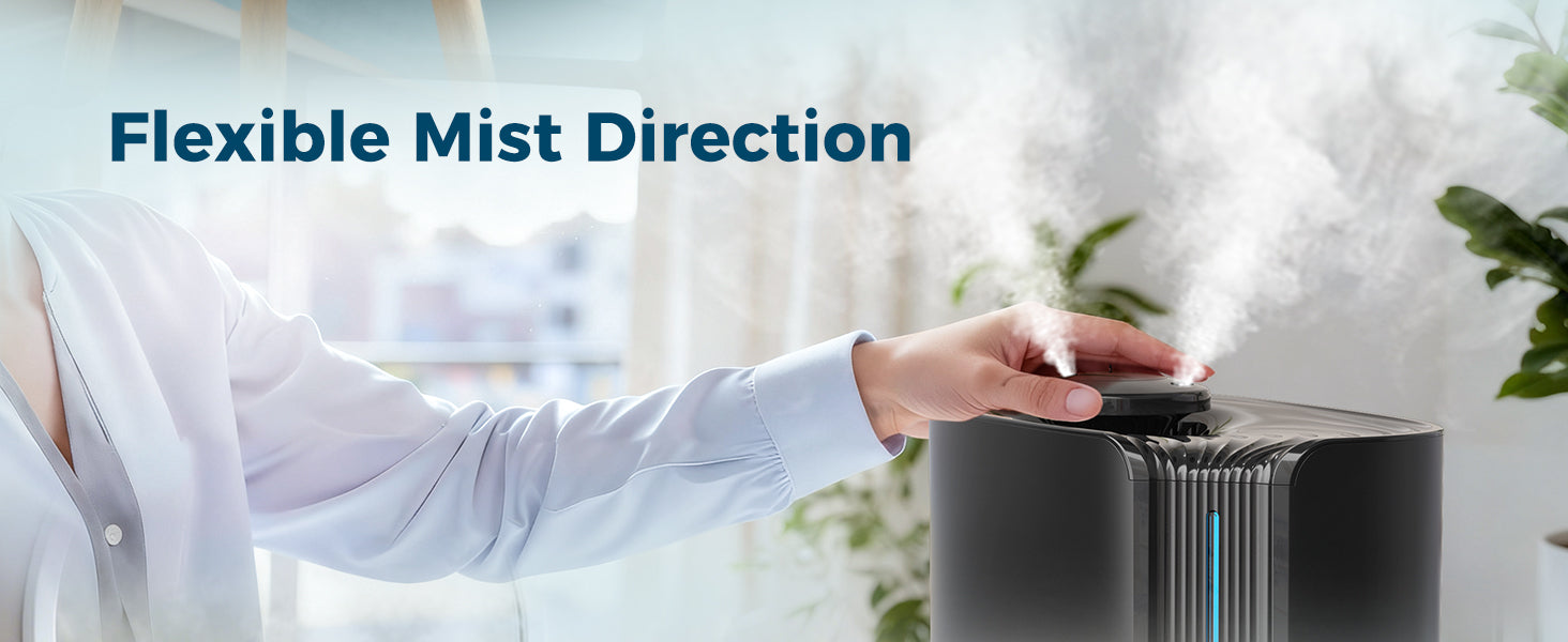Rotatable top cover allows mist output in two directions, ensuring flexible and even humidification.