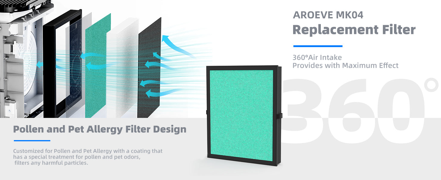 AROEVE Air Filter Replacement | MK04- Pet Dander Version