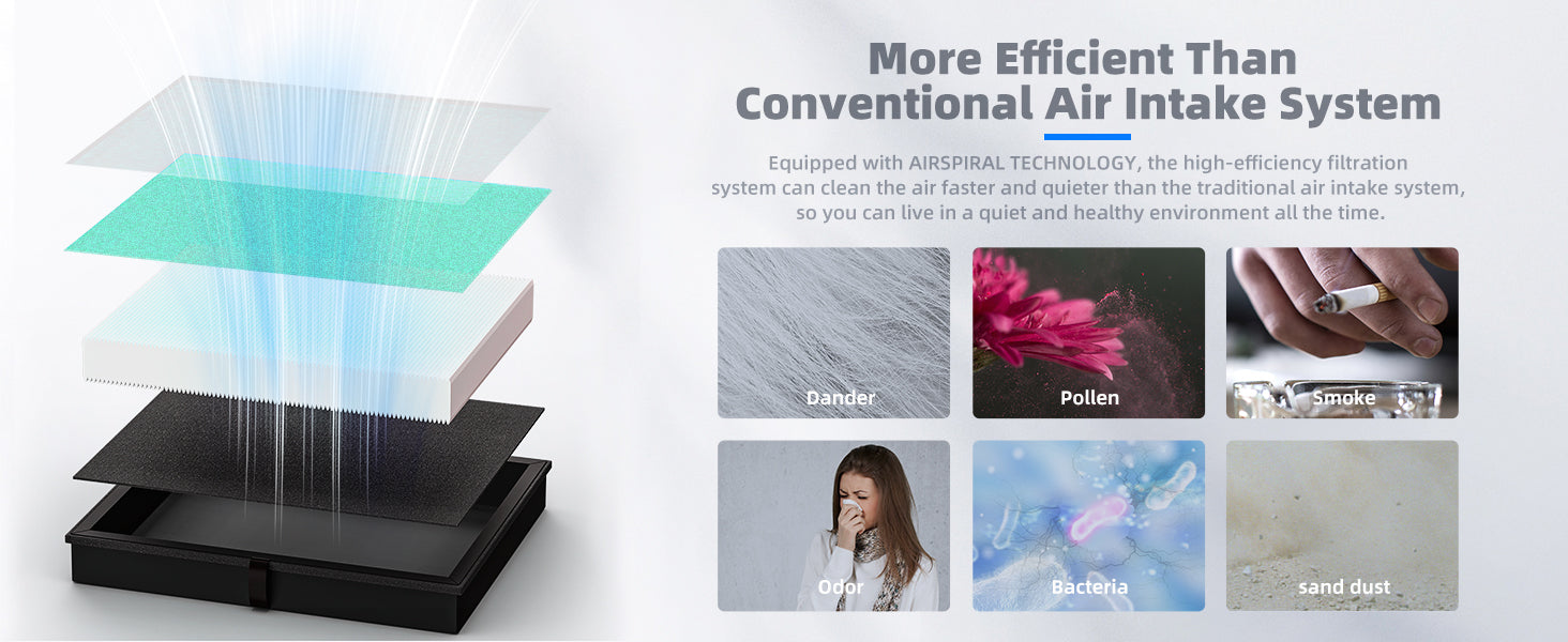 - 【Prevent Clogging】When hairs, dander, and other large particles meet the pre-filter layer, they will be captured them and keep it outside to prevent the air purifier from clogging.