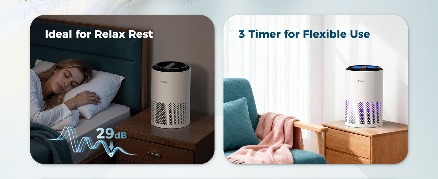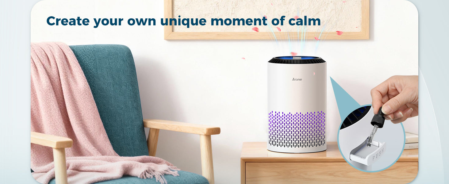 The redesigned, larger essential oil box allows for even fragrance diffusion. Add 4–5 drops of your favorite essential oil (not included) to enjoy a refreshing and relaxing atmosphere as purified air circulates.