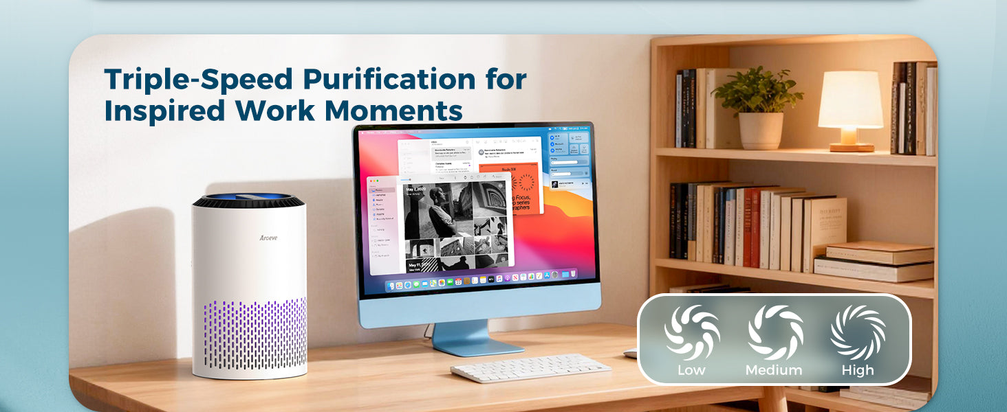 With an enlarged air inlet and upgraded purification system, the MK01A delivers faster and more uniform air distribution. It refreshes the air hourly in rooms up to 108 ft² and offers four adjustable purification levels to meet different air cleaning needs.