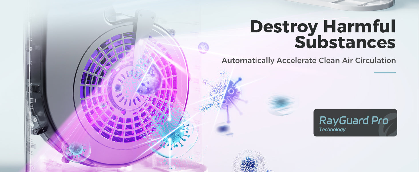 - 【Dual Air Treatment】The UV-C light treatment technology to further purifies the air. (Note: The UV function is turned off by default, please turn it on to maximize the air purifier's performance.)