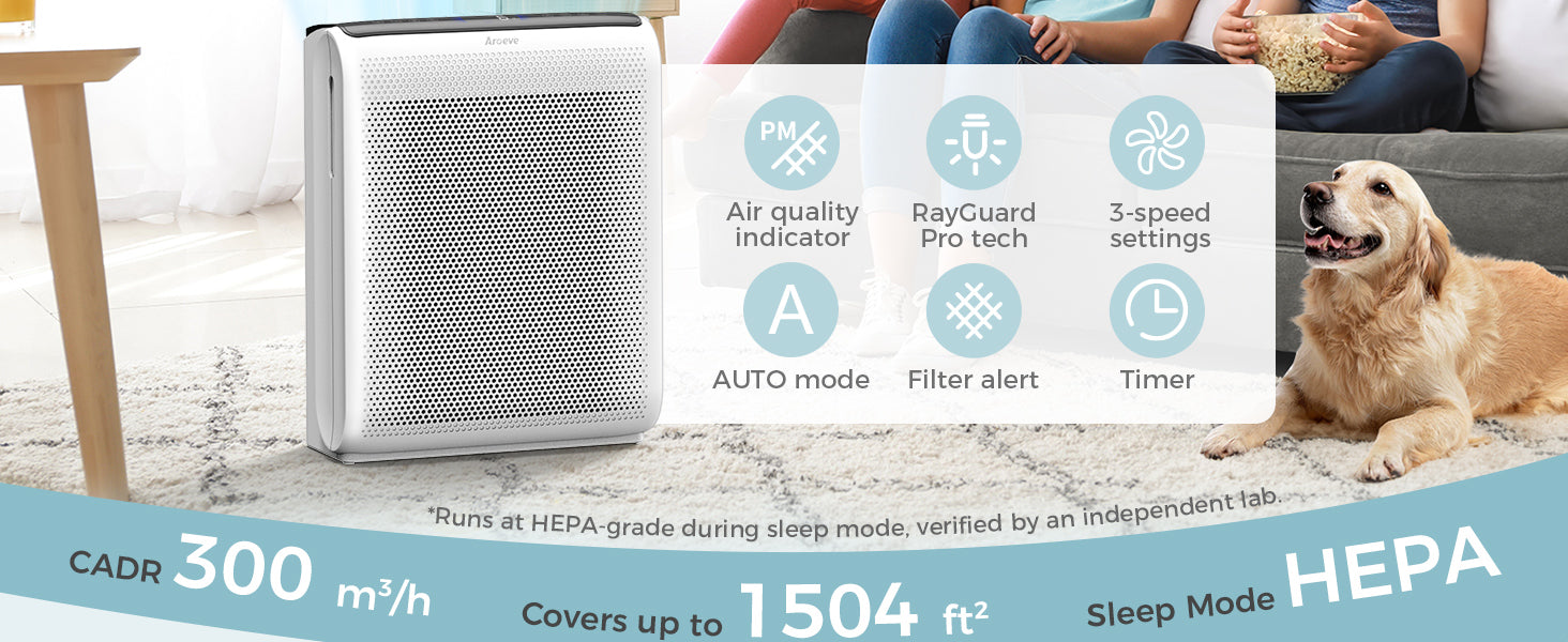 - 【Impressed Purification】The AROEVE MK07 air purifier has a high CADR of 300m³/h, equipped with a large intake for effective removal of tiny particles and pollutants. It covers spaces up to 1504ft², ensuring your home is consistently filled with fresh air.